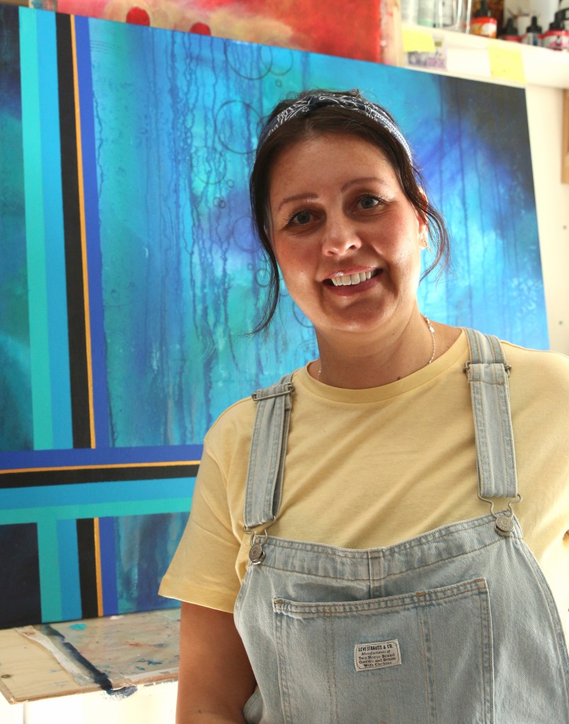 Syftet med den här bloggen är att ge mig utrymme att skriva mer om mina målningar. Kunna dokumentera processen men framför allt dela med mig till de som vill läsa varför och hur en specifik målning blir till samt vad den fick mig att känna. Det finns ofta en personlig koppling till att måla och att få utvecklas i den skapande processen är något jag ser som väldigt fint. Att måla är en process som hos mig speglas utifrån mina känslor för stunden. Den kan börja på ett sätt och sluta på ett helt annat, vilket kan bero på att målningen har fått mig att ändra min sinnesnärvaro under tiden. Det är så häftigt när man upptäcker det. Jag vill också skapa entusiasm och engagemang hos de som intresserar sig för en målning jag gjort och jag inbillar mig också att de gärna vill veta mera. Kanske att en köpare även kan relatera till en specifik känsla, något som de själva sympatiserar med eller ofta tänker på. Något igenkännande att hänga på vägg i sitt eget hem, något som även betyder något och inte bara att färgkombinationen passar just det vardagsrummet.