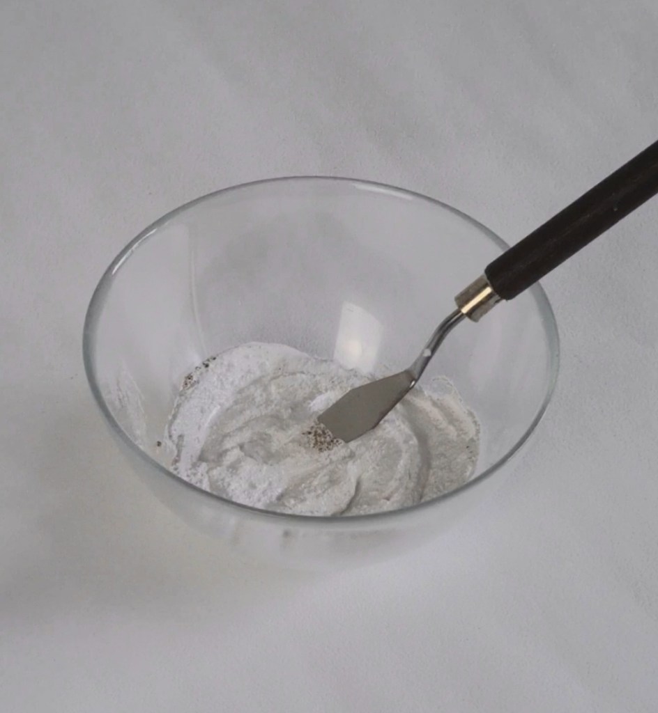 Ta fram en skål och blanda i sand och akrylfärg till lagom mycket mängd (Beror på storlek av canvas och hur mycket du tror du behöver). Konsistensten ska vara tjock men inte torr, den ska gå att bre ut utan att den smular sig och ramlar av. Tänk dig konsistensen av en tjock bea men kornig. Blir den för torr, dvs du har för mycket sand i så kan du fylla på med mer färg eller pyttelite vatten.