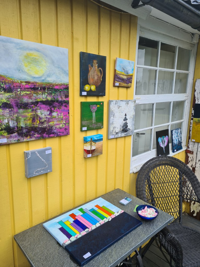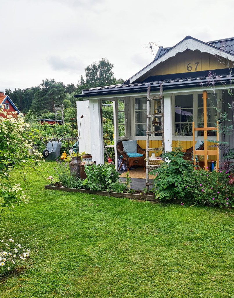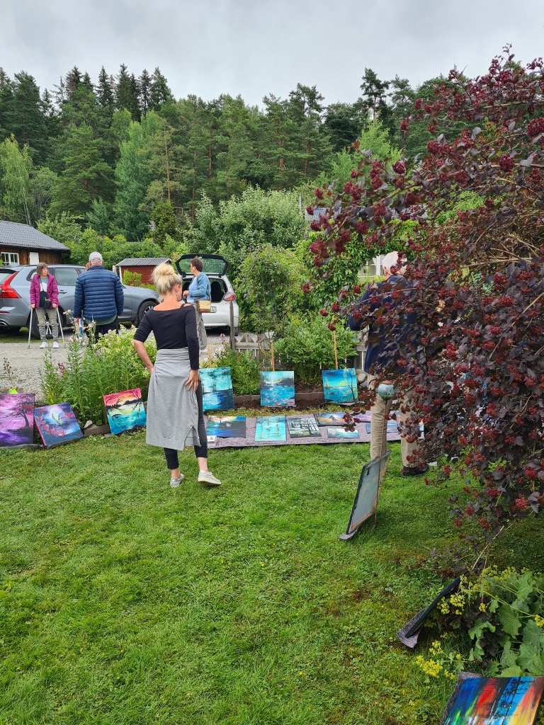 Inget napp på lokal men ändå några som fortfarande var intresserade av att ställa ut. Och så blev det, i Anna L-Ls koloniträdgård, på Biskopsängen i Västerås. Förresten en dröm att äga en kolonistuga där nere.