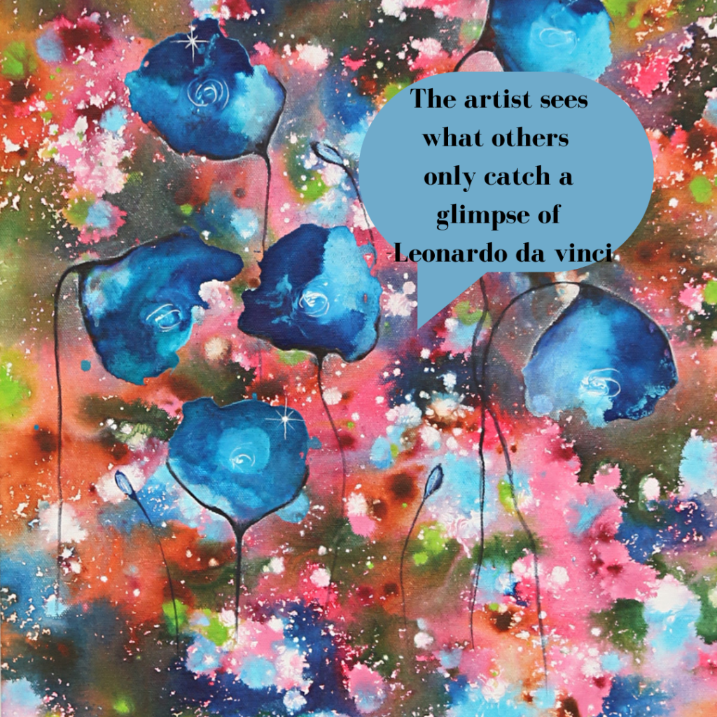 Jag triggas lite av detta, tycker det är spännande och intressant så därför har jag i de senaste målningarna lämnat ett hemligt budskap. Syftet med budskapen är att jag vill ge målningen en själ. Det kan vara allt från att ge glädje, kraft, energi, uppmuntran eller kärlek. Det är budskap som kommer till mig för stunden och kanske egentligen inte har något med målningens motiv att göra. Huvudsakligen kunna sprida några väl valda ord, välförpackade så ingen annan kan ta dem ifrån målningen.