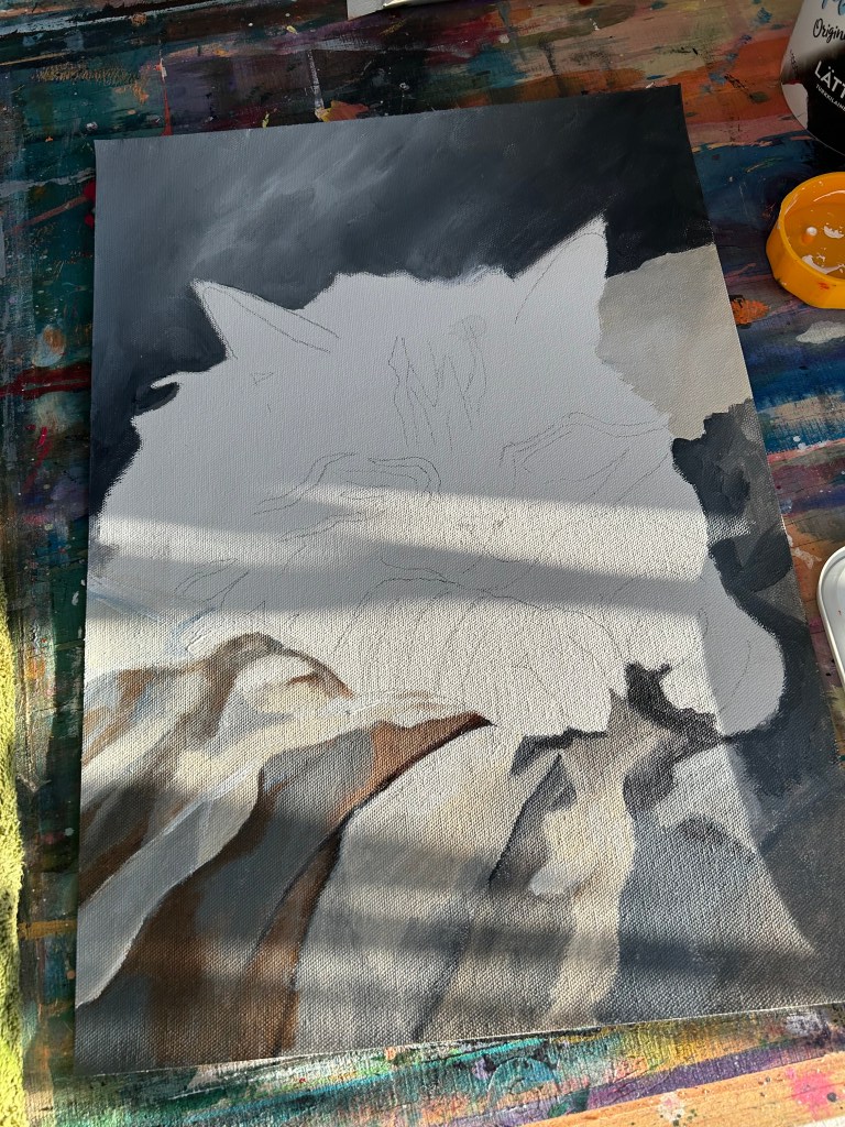 Sist men inte minst, jag är mycket entusiastisk över att meddela att jag har påbörjat ett nytt konstnärligt projekt! En serie med akrylmålningar kommer att skapas, och temat är inget mindre än katter. Dessa lurviga varelser har alltid varit en källa till glädje och fascination för mig, och jag ser fram emot att ge dem liv på duken. Vi har ju vår egna lilla ginger, lussekatt, katten – ja kärt barn har många namn. Hon heter Sally,eller Sally Felicia Eriksson när vi blir irriterade, vilket är väldigt sällan. Hon sprider mest bara ljus och kärlek. Hur som… hon kommer att få spela en stor roll som modell. Kanske inte som bilden nedan men hon är så förbaskat gullig här, och lite kränkt, så jag kan inte låta bli att dela den med er ❤
