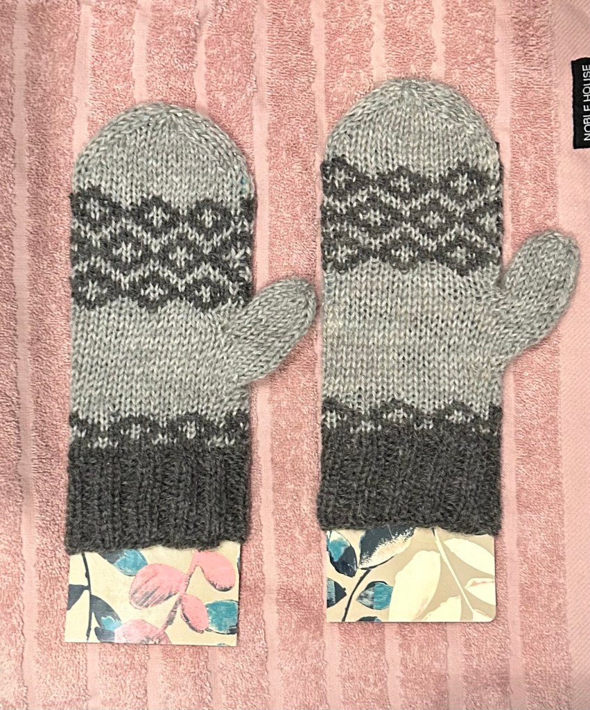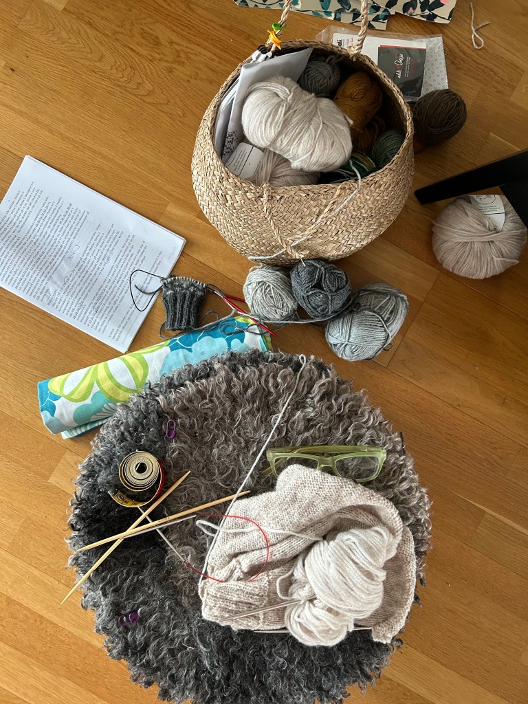 Medan jag gav min rygg tid att läka, upptäckte jag min växande besatthet av att sticka. Det blev ett par vantar, som ligger på blockning just nu. Jag hade ett stickprojekt på gång sedan tidigare, en väst, som jag tog tag i, men problemet jag har är att jag tröttnar om det bara är att sticka fram och tillbaka så jag beställde nya stickor, garn har jag sedan tidigare, och tänkte starta ett nytt projekt… hihi. Det är lite terapi också, det här med att sticka, och jag känner mig sysselsatt, befinner mig just där just då. Dessutom somnar jag inte i soffan varje kväll som jag brukar.