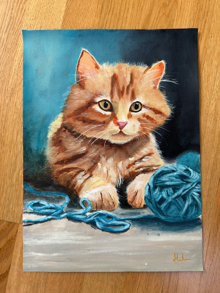 Men det som jag verkligen har fokuserat på är att få klar min andra kattmålning och jag vågar nog rätt så självsäkert påstå att den blev precis lika gullig som jag hade förväntat mig. Att skapa konst med katter som huvudmotiv är överraskande stimulerande. Får sötchocken varje gång!